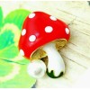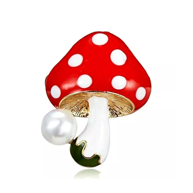 Unbranded Delightful MAGIC Mushroom Polka Dot Gold PEARL Red Enamel Brooch Red
