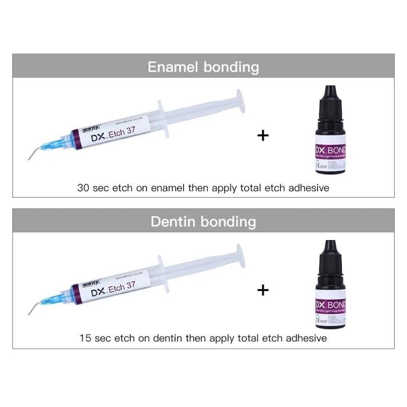 - Dentin bonding:15 seconds DX.Etch37 etch on dentin then apply 5th generation adhesive.