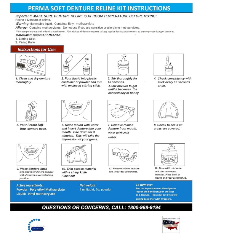- Specially formulated powder and liquid create a soft yet firm lining that conforms to your gums.