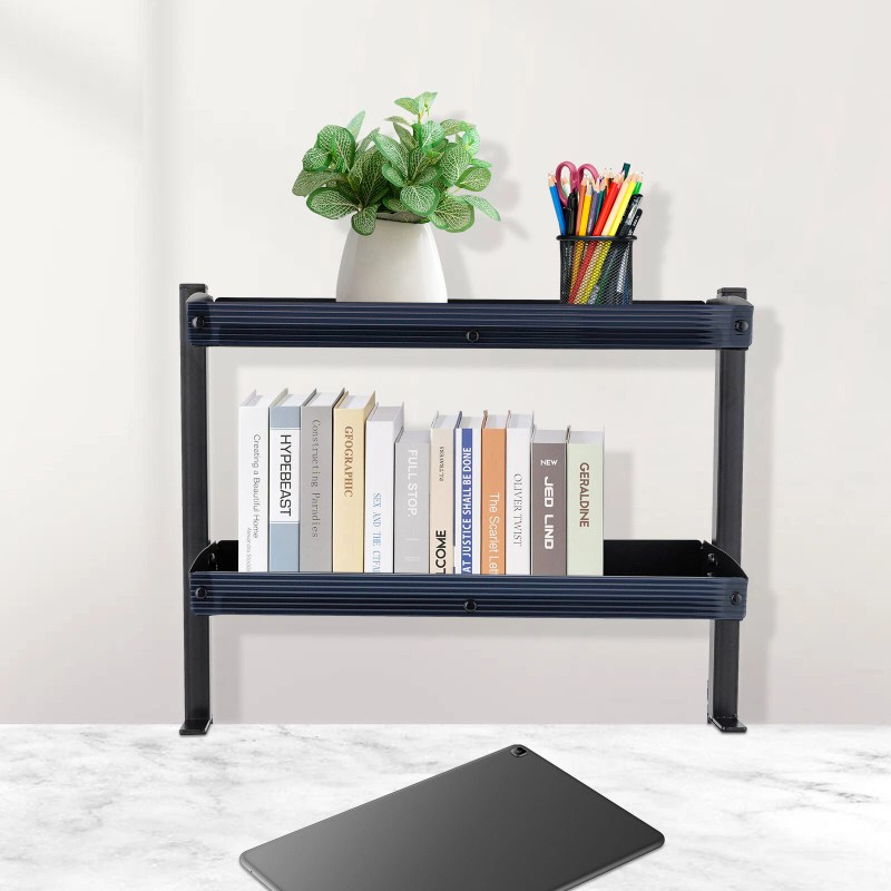 2-tier Design: The upper tier provides ample space for a laptop or other essentials, while the lower tier provides a convenient place for books or personal items. Keeping them categorized and organized will make your desktop cleaner and tidier.