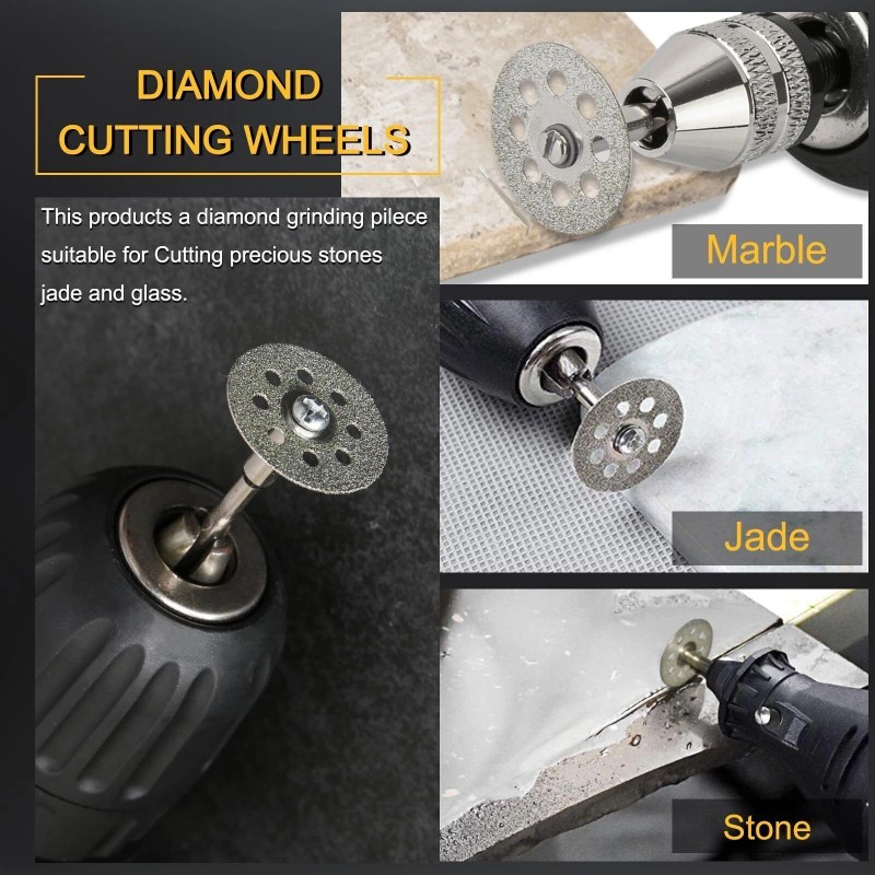 - √【Universal Shank】Rotary tool diamond burrs set,Shank Diameter:0.118"(3mm); The Cutting Wheels are sharp and strong, making them perfect for Cutting gemstones, glass, geramics, porcelain, tiles, carbide, rocks, aluminium and copper.