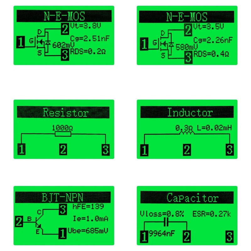✔ **Auto-Detection & Polarity Recognition** – No manual configuration needed! The tester automatically detects component type, pin configuration, and displays results on a clear **backlit LCD screen**.