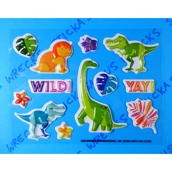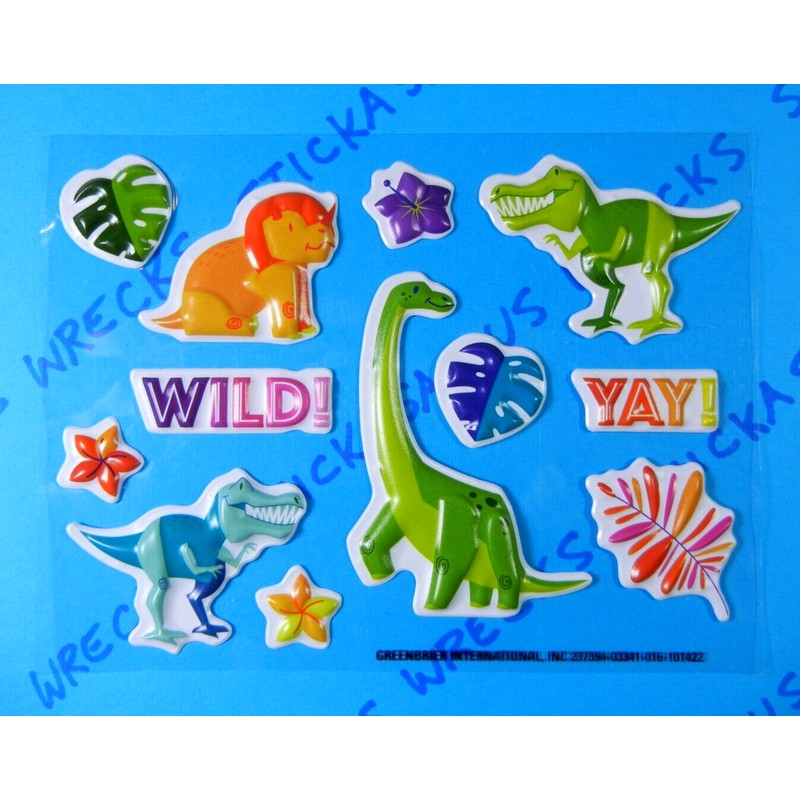 Sticker Sheet Is New. Sticker Sheet Is Small. Sticker Theme Is Dinosaurs. Stickers Are Puffy.