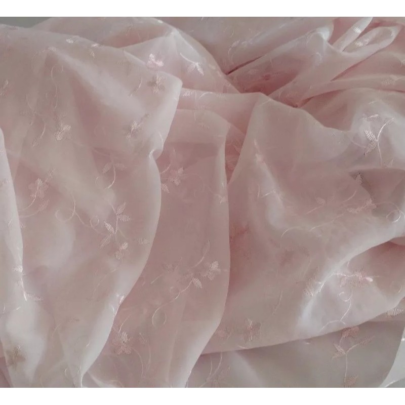 Unbranded Discount embroidered pink Voile 110" wide by yard. Semi sheer. Free swatches.
