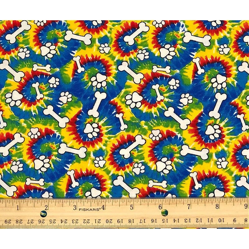 Unbranded Dog Bones and Paw Print on Tie Dye Cotton Fabric, By the Half Yard