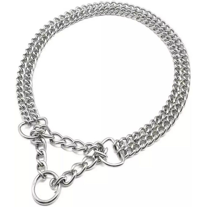 Dog Pet Martingale Pinch Metal Stainless Steel Collar for Training Walking Link Double Plated Choke Chain Neck for XL Dogs 24-28"