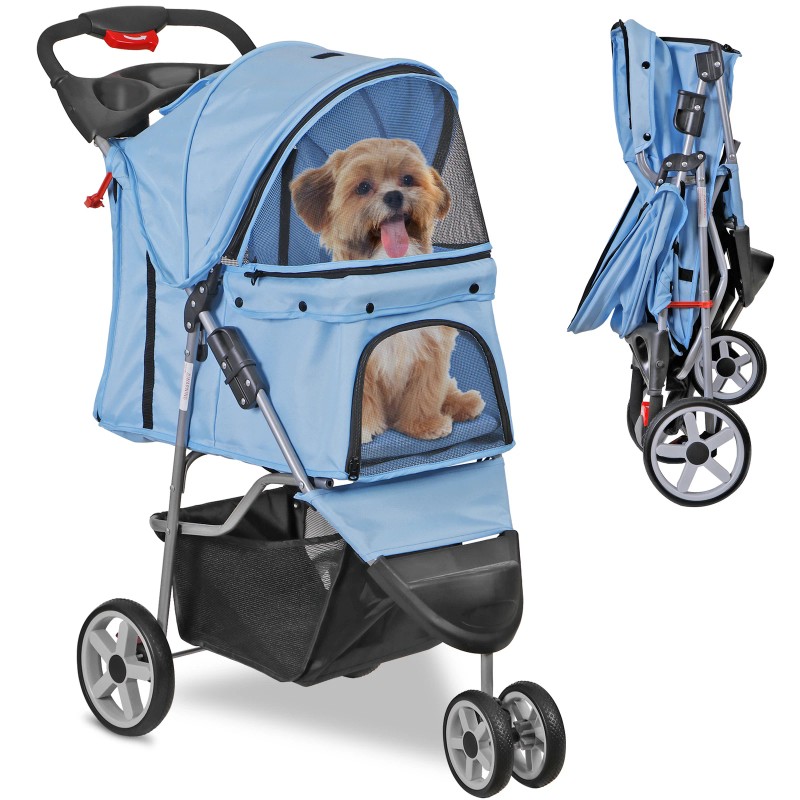 Unbranded Dog Stroller 3 Wheels Pet Stroller Cat Jogger Stroller Lightweight Foldable Blue