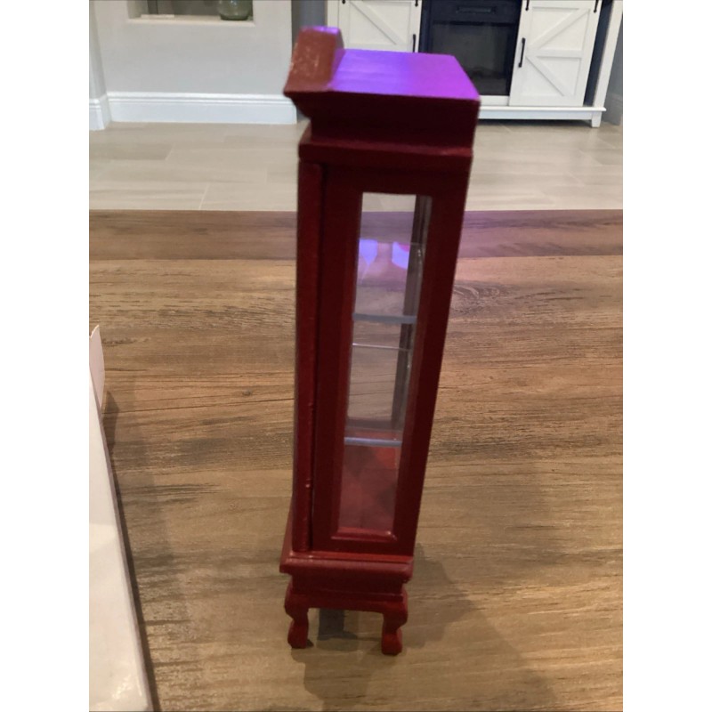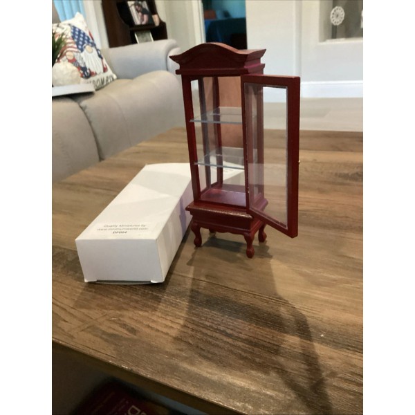 This dollhouse miniature wooden display cabinet is designed for collectors and craft enthusiasts who enjoy creating intricate scenes in their miniature rooms. With a Victorian style and vintage features, this cabinet adds a touch of nostalgia to any display. Made from wood and measuring 7 inches in height, it is suitable for a variety of rooms in a dollhouse, including the library, study, bedroom, living room, nursery, and baby's room. Complete with toys and a charming design, this cabinet is a perfect addition to any dollhouse miniature collection. New in box.
