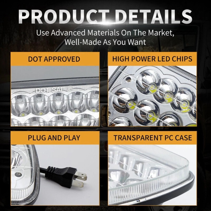 Unbranded DOT For Jeep Cherokee XJ 1984-2001 Wrangler YJ 1986-1995 5x7" 7x6 Led Headlight