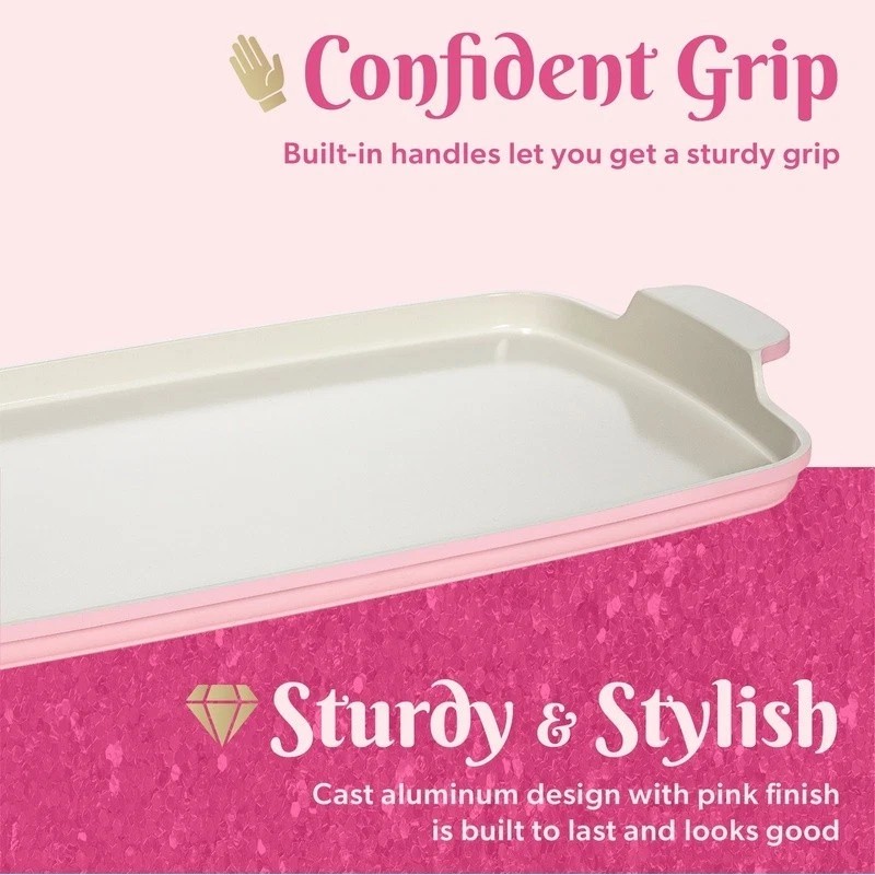 CHIC & HIGH-PERFORMANCE DESIGN: This 17. 8"" x 10. 5"" double burner griddle features a soft pink finish with durable cast aluminum construction and a Clean Ceramic™ nonstick coating for effortless cooking and easy cleanup.