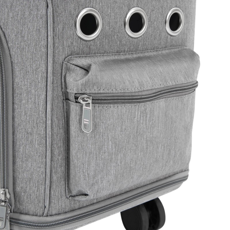 Create an Exclusive First-class Experience for Your Little Fur Friends with This Rolling Pet Carrier from Us. It Blends Fashion and Functionality with Pet-friendly Materials That Are Lightweight and Sturdy. Its Breathable Mesh Window Design Ensures Air Circulation, Allowing Your Pet to Breathe Freely While Enjoying the Scenery. Own It Now and Make Your Beloved Pet's Every Trip a Sight for Others to See!
