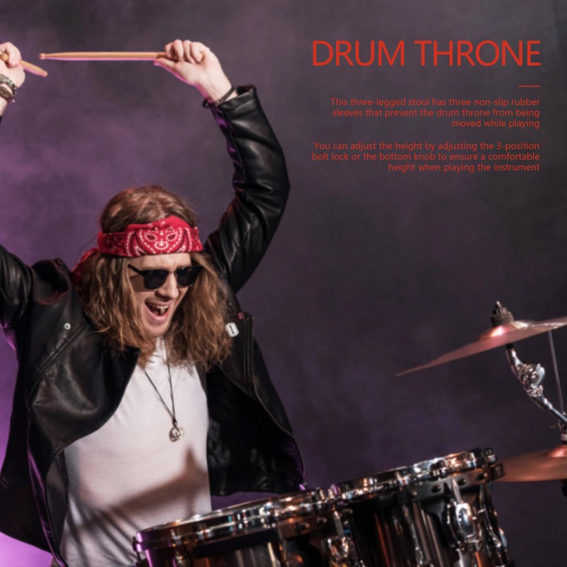 1. This three-legged stool has three non-slip rubber sleeves that prevent the drum throne from being moved while playing