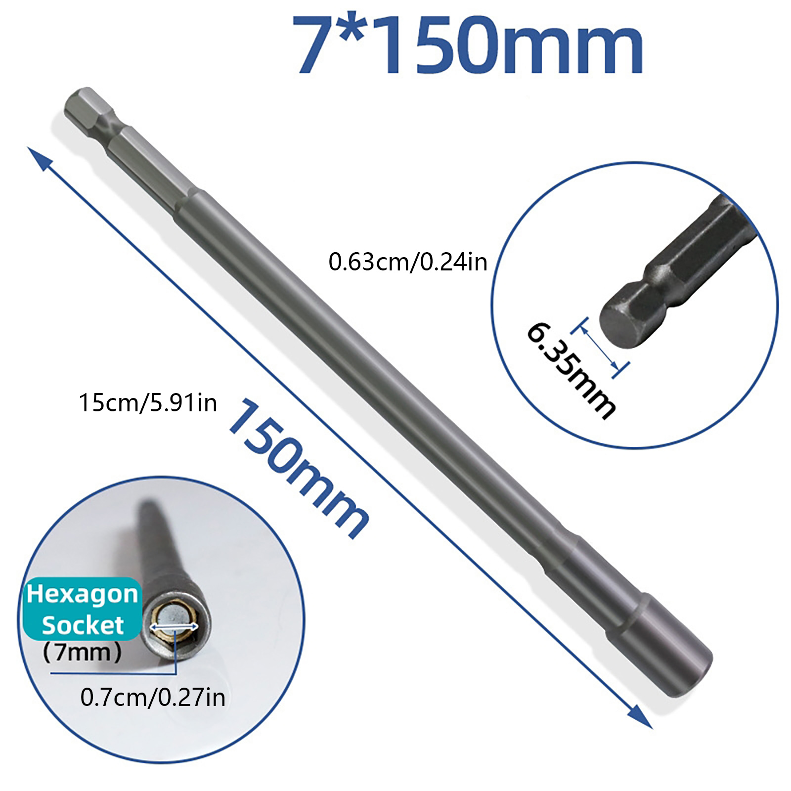 Durable Long Hex Magnetic Nut Driver Socket Drill Bits Adapter 7mm Socket Tool;