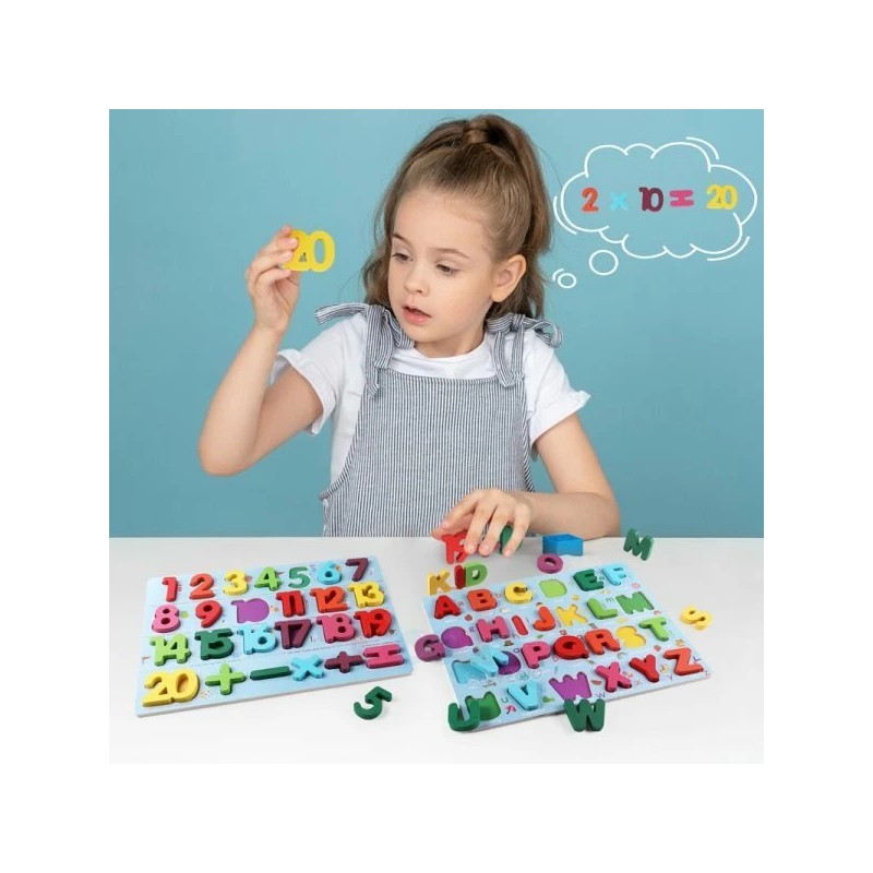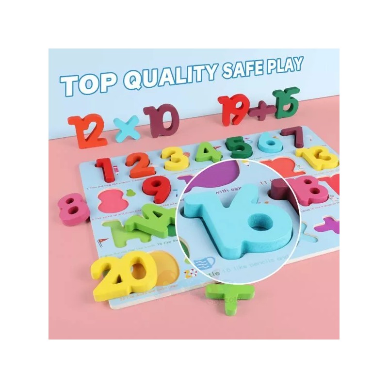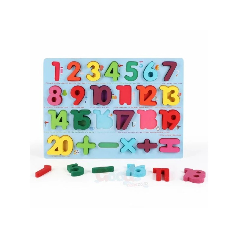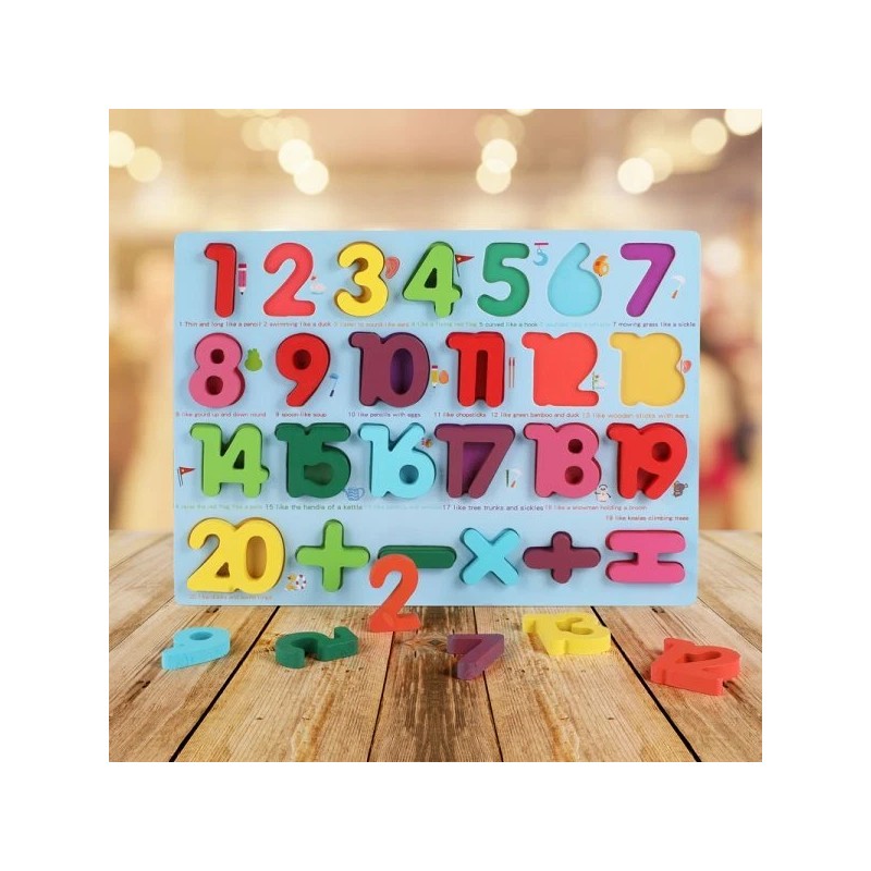 ✔MULTI TRAINING:Early math skills and color learning. Help teach a child about Number recognition, They are great for sharpening a toddler's cognitive, hand-eye coordination and fine motor skills.Wooden number puzzle contains 25 pieces(1-20 number & addition, subtraction and equals symbols).