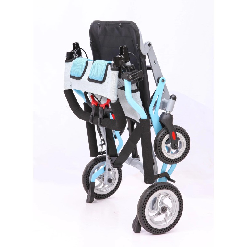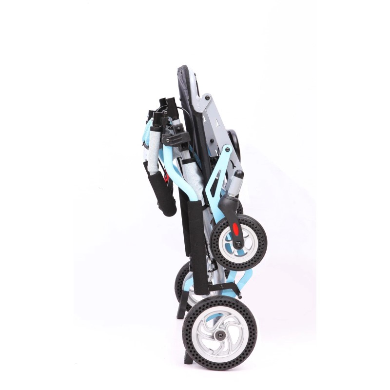 【Durable and High-End Materials】Crafted from high-end aviation-grade aluminum alloy, this folding transport wheelchair is built to last. The robust frame is both corrosion-resistant and impact-resistant, ensuring exceptional durability and strength for long-term use.