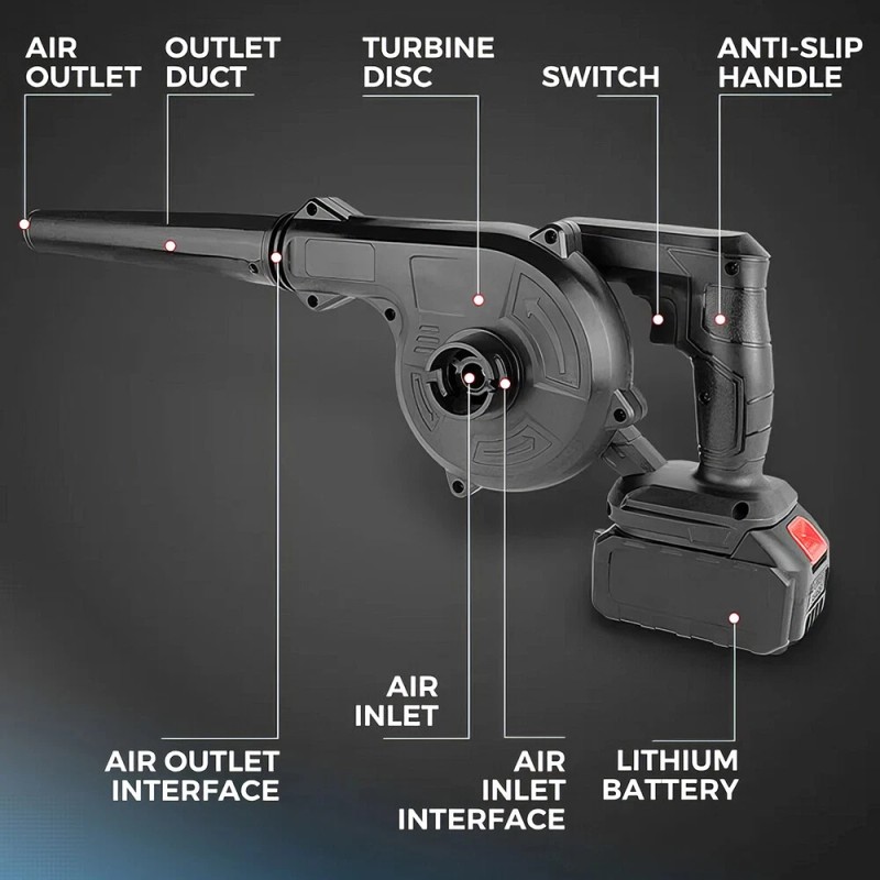【Adjustable Super Strong Wind Blower】Boost Turbofans & all-copper motors provide up to 18000rpm strong power.It's air volume can reach 2.6m³/min.You can press the power switch to adjust the air volume you want.Light press for low air volume and heavy press for high air volume.It's easy to blow up wet leaves,snow on your car,and keep your garden clean after a rainy day.