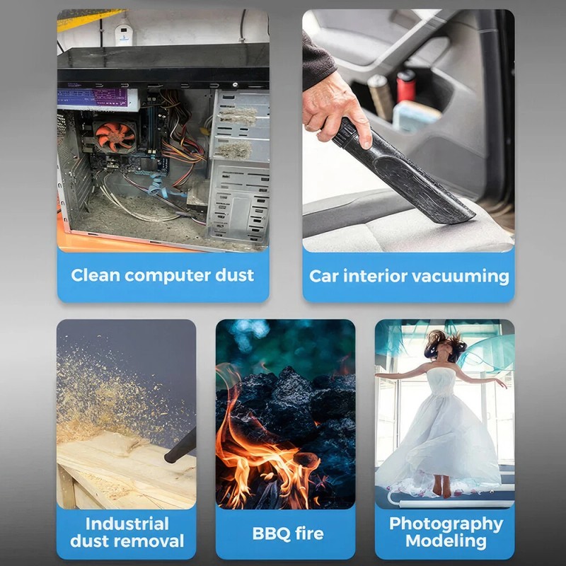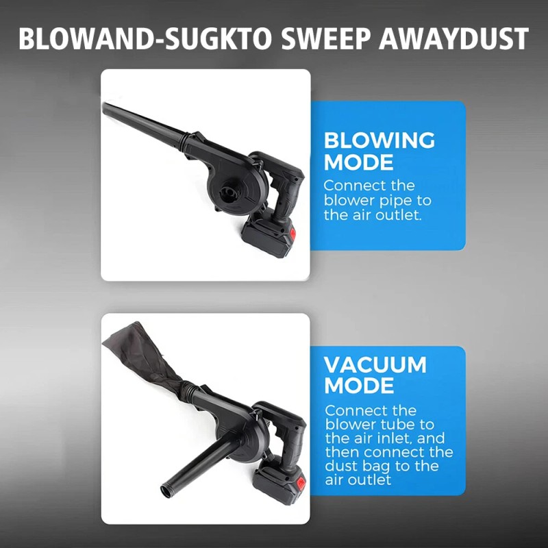 【Easy to Use as a Vacuum Cleaner】When you install the blow tube in the air inlet,put the reusable collection bag at the air outlet,the blower will become a vacuum cleaner immediately.Super strong suction allows you to absorb computer dust,pet hair,crumbled cookies,hard to clean corner and so on.