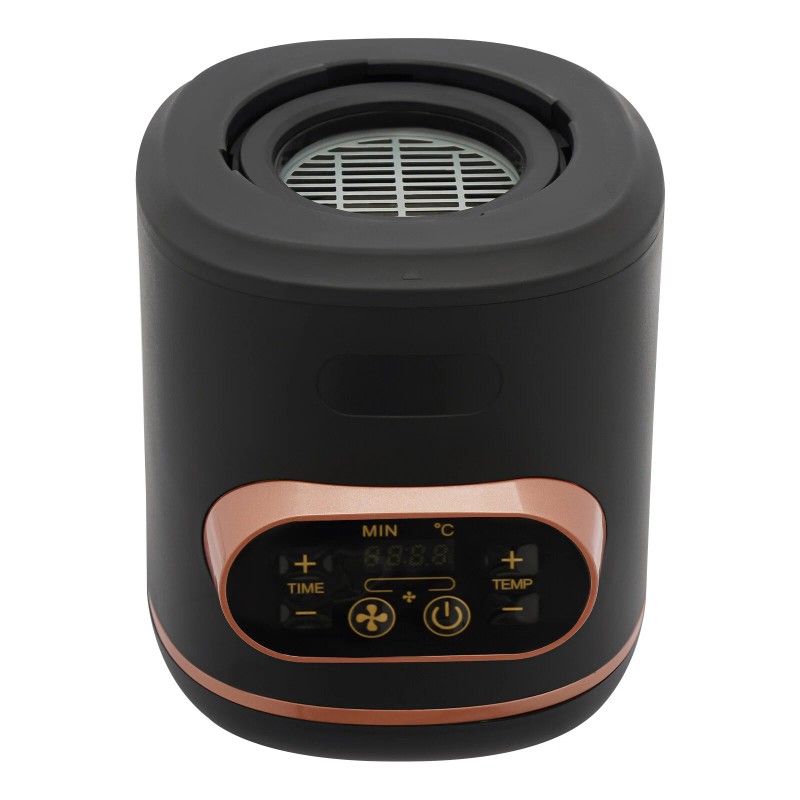 Specifications Color: Black Style: Modern Material: Glass, Plastic Power Source: Corded Electric Plug Type: US Standard Display Type: LED Voltage: 110V Power: 1500W Temperature Range: 0-240°C/32-464℉ Time Range: 0-20mins Fan Gears: 3 Capacity: 100g/0.22lbs Power Cord Length: 97cm/38.19in Product Size(D*H): 18*34cm/7.09*13.39in Package Size: 41.5*22.5*19.5cm/16.34*8.86*7.68in Gross Weight: 2.8kg/6.17lbs Net Weight: 2.1kg/4.63lbs | ![]() |