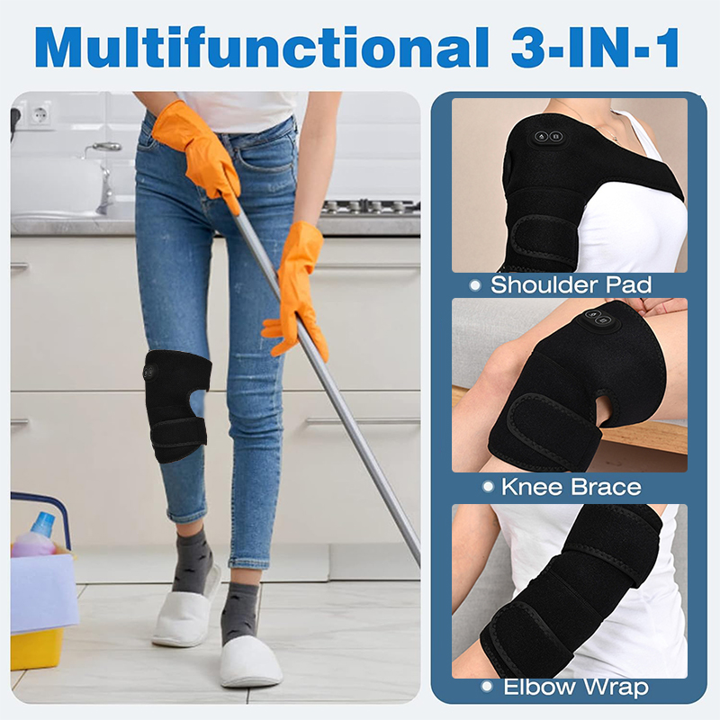 Knee/Shoulder/Elbow Massager: 3 In 1 heated massager wrap pad is not only used for knees, but also for elbow and shoulder. Heating Pad is equipped with extension straps, which means you can use it to heat your arms, thighs, knees, calves, ankles.