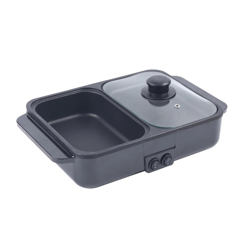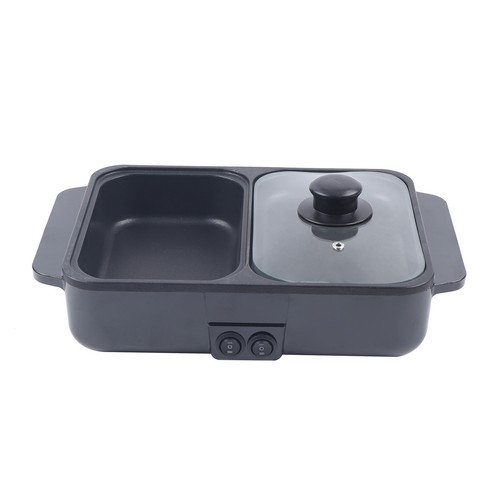 Unbranded Electric Hot Pot and Grill Combo 2-in-1 Portable Cooker BBQ Baking Grill Pan