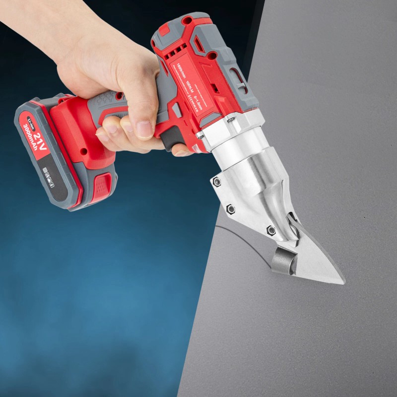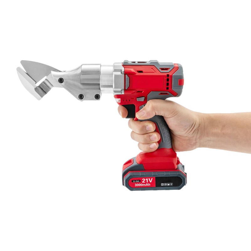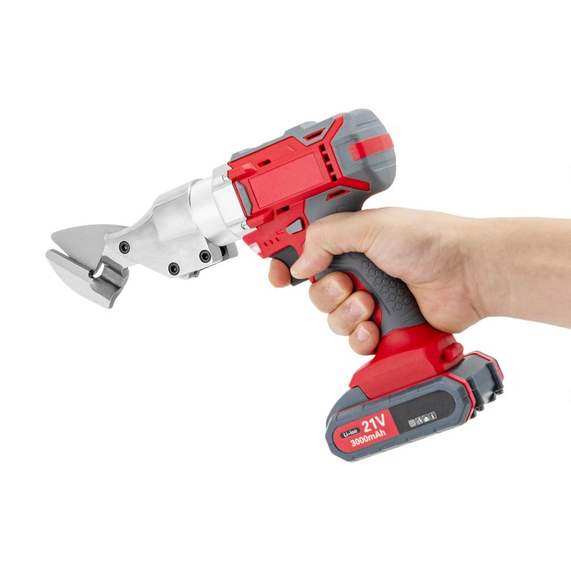 The 21V metal shear features a replaceable chrome vanadium steel cutter head for a smoother cut and longer life. The two-speed adjustment switch and the infinitely variable speed switch can make your cutting work more delicate. It also has a variety of protection, emergency brake function, and safety lock button design, which can provide you with a higher degree of security.