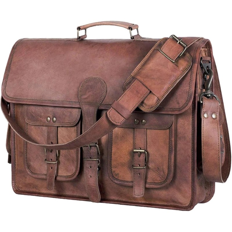 Unbranded Elegant Leather Laptop Satchel: Timeless Design for Stylish Professionals