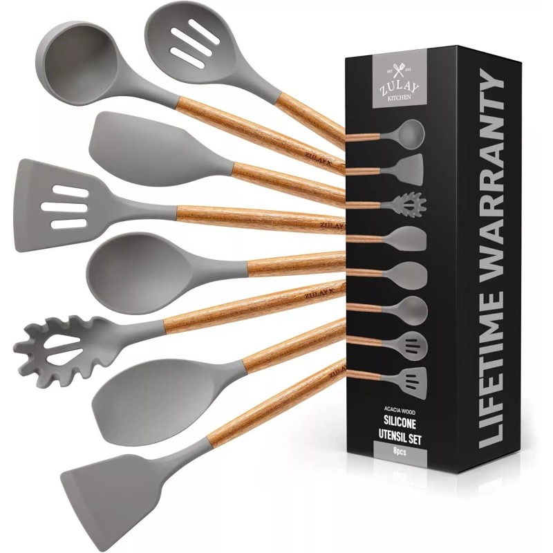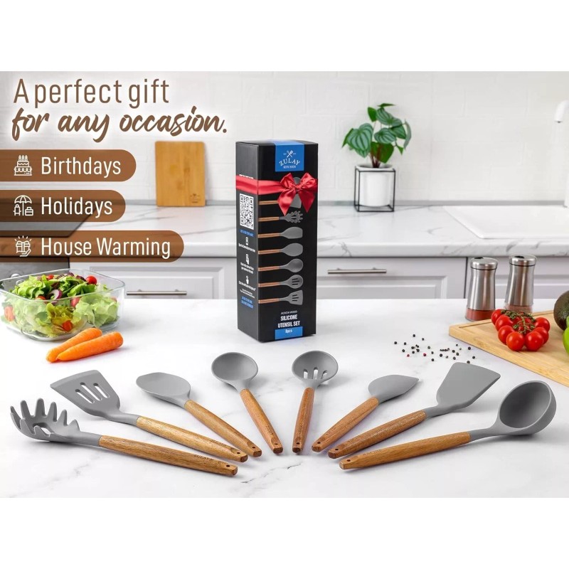 Elegantly Designed Silicone Cooking Utensils with Acacia Wood