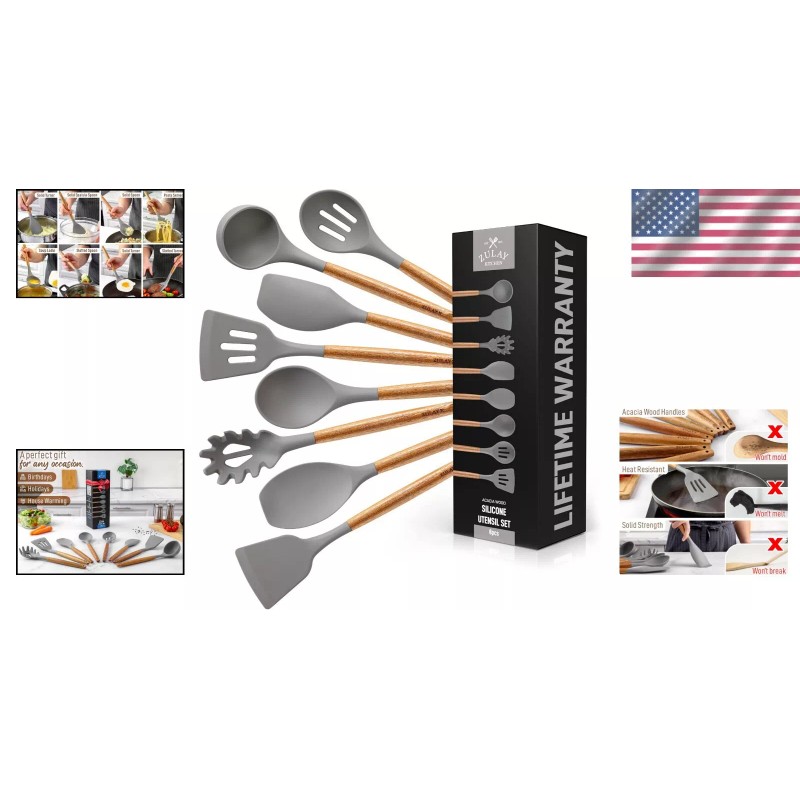 Elegantly Designed Silicone Cooking Utensils with Acacia Wood - 464°F Resistance