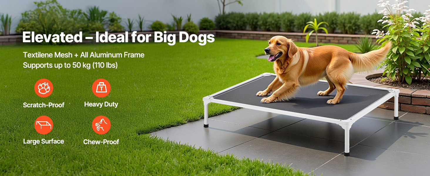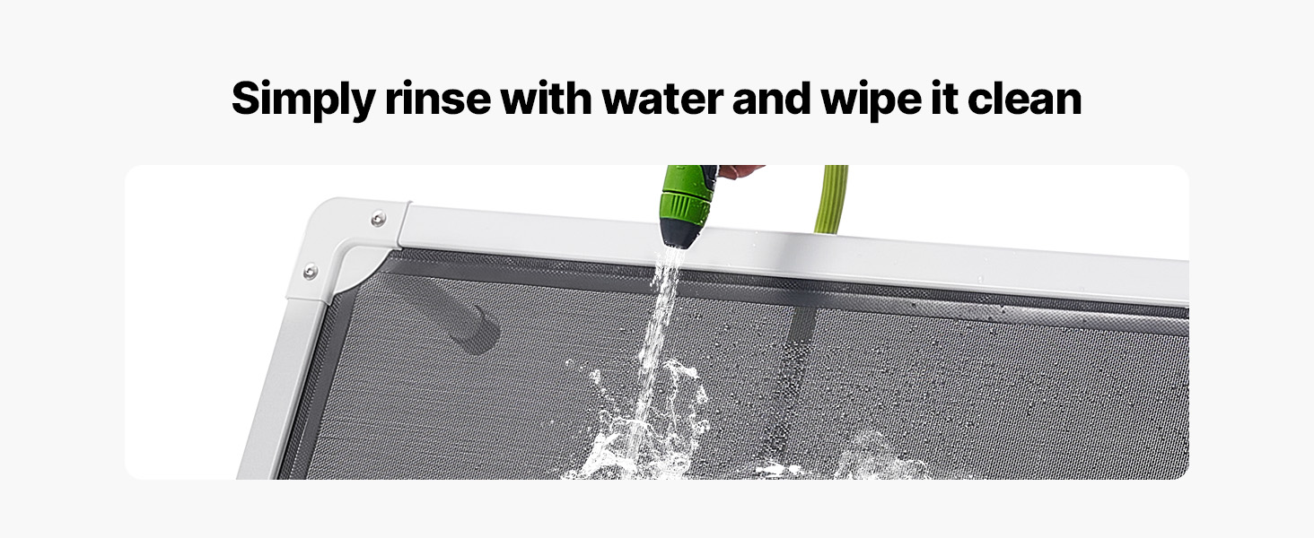 - Breathable Mesh Fabric: High-quality mesh ensures constant airflow, keeping your pet cool and comfortable while resting. Sensitive areas like the belly and underarms stay fresh. With waterproof and oil-resistant features, cleaning is hassle-free. The elevated dog bed is machine washable, avoiding hair buildup, promoting your pet's skin health and making maintenance easier