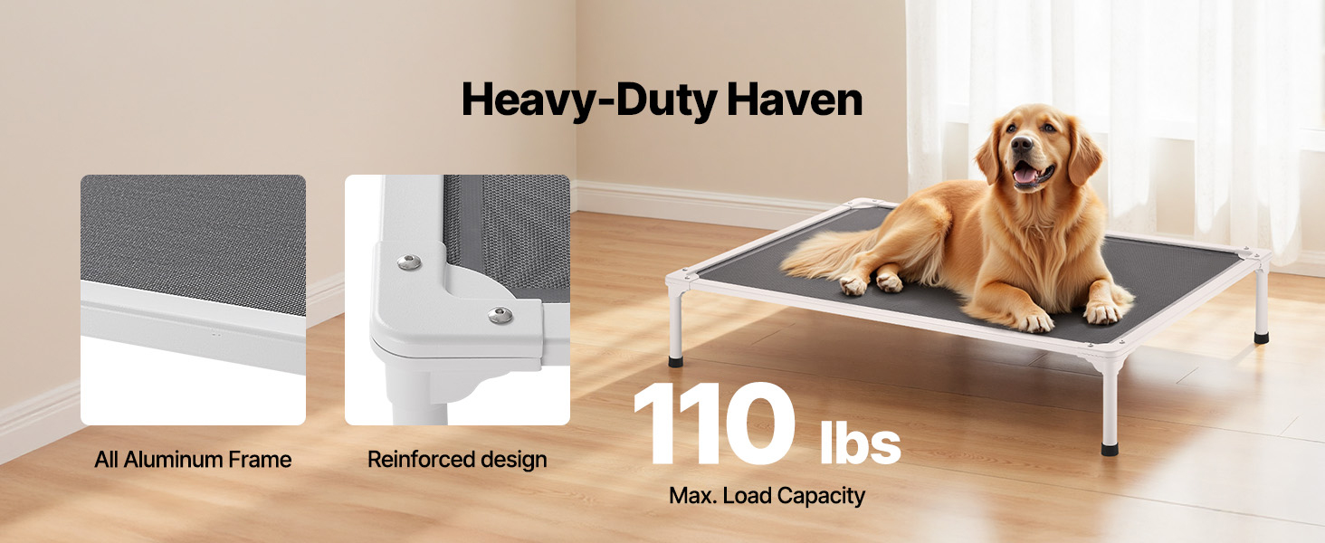 Fully enclosed aluminum tubes hold up to 110 lbs / 50 kg—suitable for big dogs (like Labradors/Goldens) or 2-3 small pets. Chew-proof design features smooth surfaces and rubber-tipped ends to avoid teeth from gripping, ensuring durability through puppy teething. Sturdy, wobble-free support provides lasting stability.