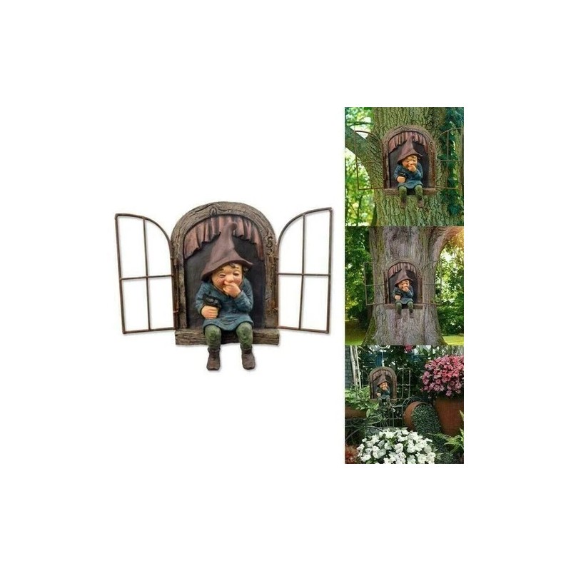 Unbranded ELF OUT THE WINDOW GARDEN GNOME TREE HUGGER DWARF RESIN CRAFTS FEMALE STATUE US