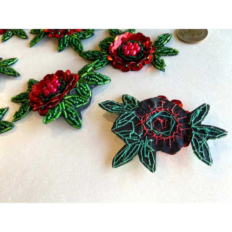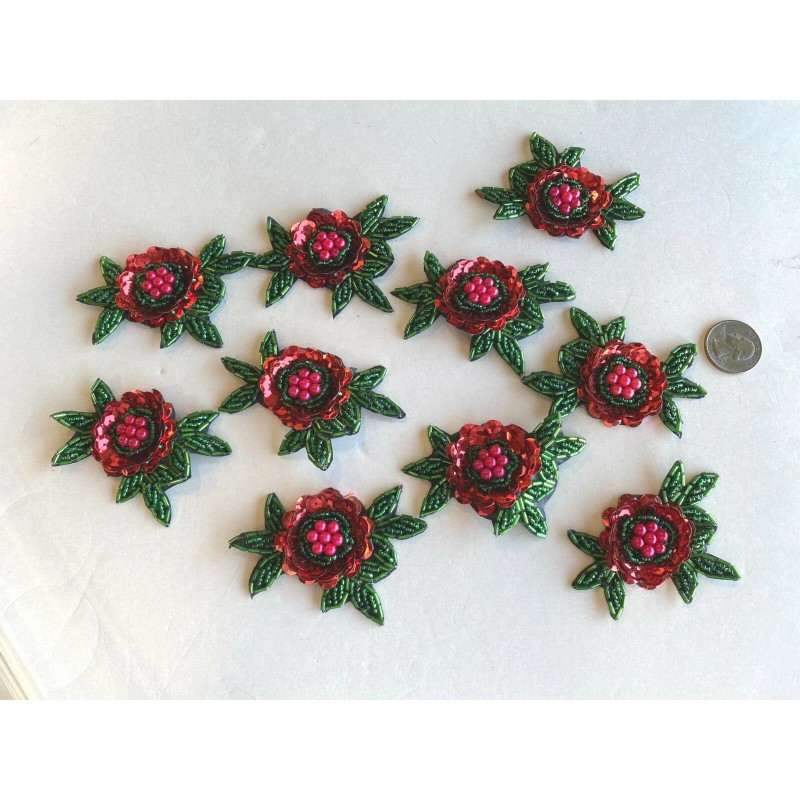 Embroidered Appliques Hollyberry Sequin Beaded Sewing Clothing 10pc |