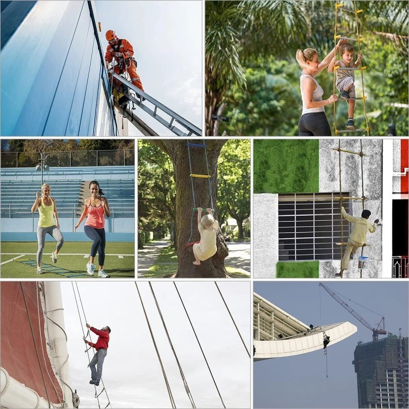 【Compact & Portable】Due to the compact and lightweight design, the outdoor climbing ladder can be easily carried around, easy to store, and can be stored under the bed, in the closet, or hung around the window without taking up too much space. It is also light in weight, so even children can easily carry and use it.