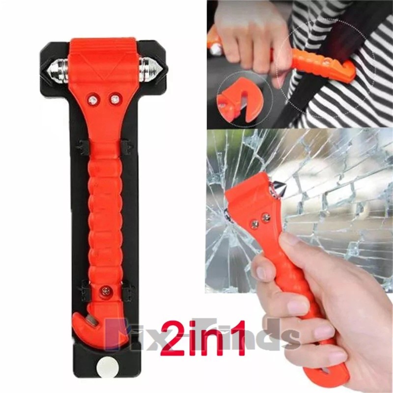The Emergency Hammer is a tool every driver should have. It is designed to help prevent being trapped in a wrecked or submerged vehicle. Should the doors become jammed shut or a seat belt locked after an accident, the double-sided steel hammer points allow the driver to easily shatter side and rear windows, while a safeguarded razor blade cuts easily through safety belts for a quick escape.This emergency hammer includes a black mounting bracket for quick access installation to a roof, dash, or console. The bright orange plastic body make the hammer easy to find.