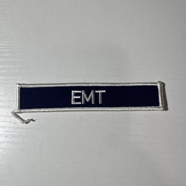 Enhance your attire or accessories with the EMT Tab Patch, an unbranded emblem that signifies expertise and dedication in the field of emergency medical services. Measuring 5”x1”, this embroidered patch features a striking silver logo on a blue background, adding a professional touch to your uniform or bag.