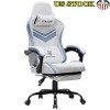 The  chair combines comfort and functionality for an enhanced gaming experience.  Its plush padding contours to your body, offering excellent support for your back, neck, and shoulders.  An integrated footrest promotes healthy circulation, while adjustable lumbar support and a headrest pillow reduce strain and encourage good posture.  The reclining feature allows you to easily find the perfect angle for relaxation or gaming.  Adjustable armrests ensure proper arm and wrist alignment during extended sessions.  Smooth-rolling wheels provide effortless mobility, making it easy to move around your setup.  Elevate your gaming experience with this thoughtfully designed chair.