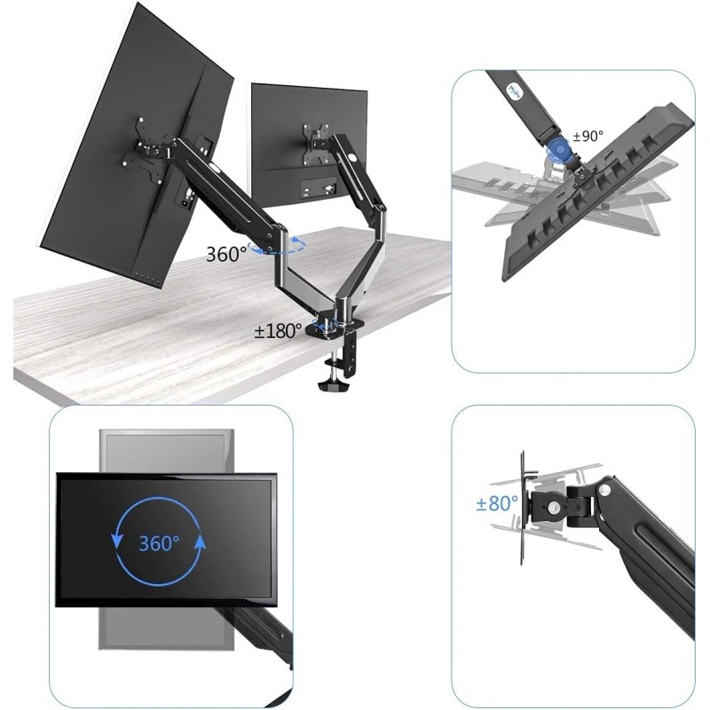 Type: Desk Mount | Number of Monitors: 2 | Color: Black | Adjustment: Tilt & Rotate |