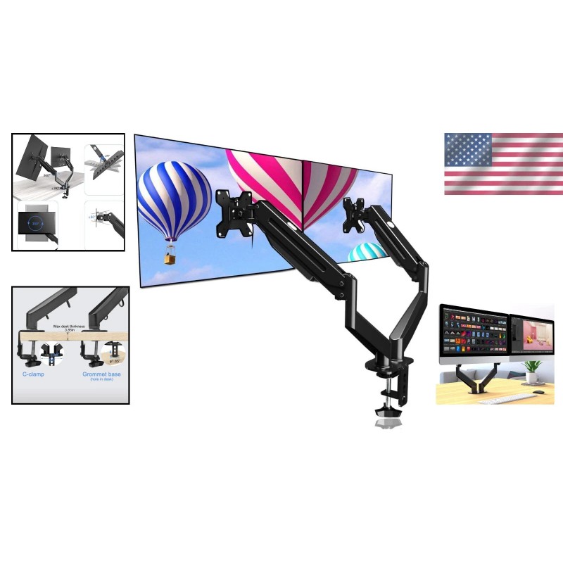 Unbranded Ergonomic Dual Monitor Mount with Gas Spring, Adjustable for 17-32 Inch Screens