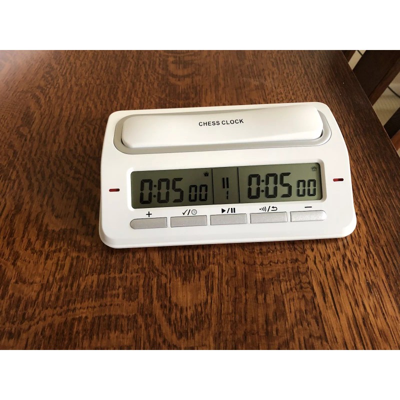 An excellent plastic tournament chess set. The board, white and black, is 20 X 20 inch, foldable and has algebraic notations. The pieces are cream and black, have felted bottom, weigh about 1.25 pounds and the king is 3.75 inches tall. The pieces and board are made in Poland. In the pictures you will see how this European chess set (on the right side of the picture or the right of its counterpart) compares with regular triple weighted chess pieces commonly sold in the market. A made in Europe plastic chess set is a rare finding nowadays! The set comes with a matching white chess clock that is easy to set with the ability to add delay and bonus time controls.