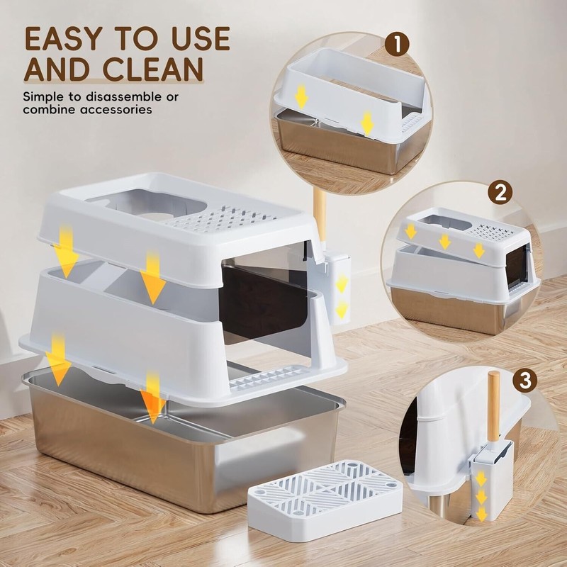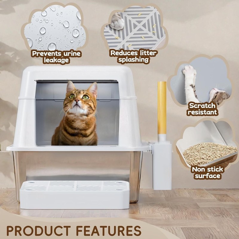 - 304 Stainless Steel Construction: Crafted from sturdy SUS304 stainless steel, our litter box is resistant to scratching, rusting, and is ultra-hygienic.