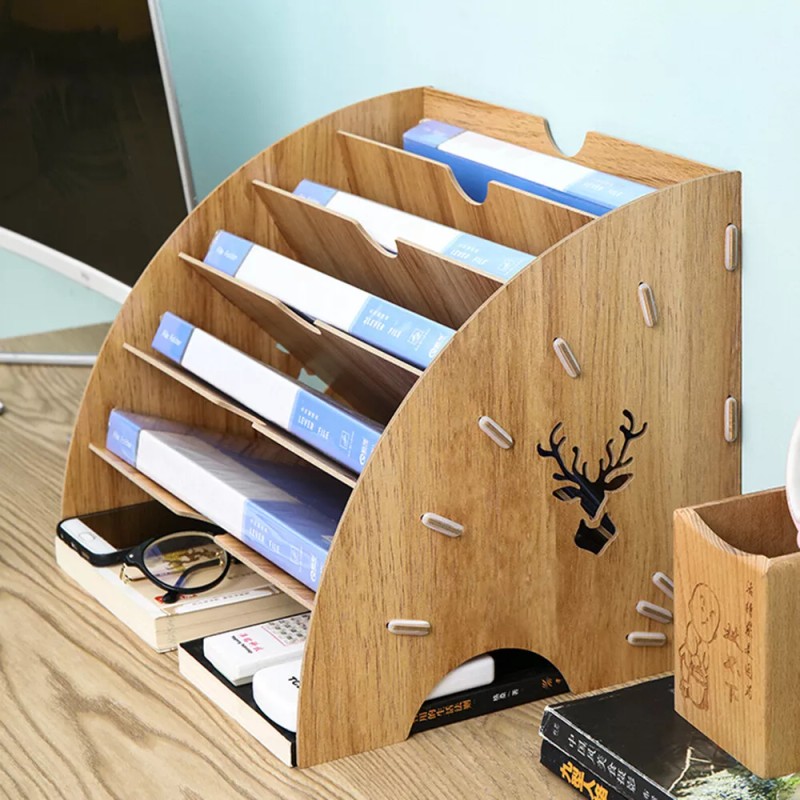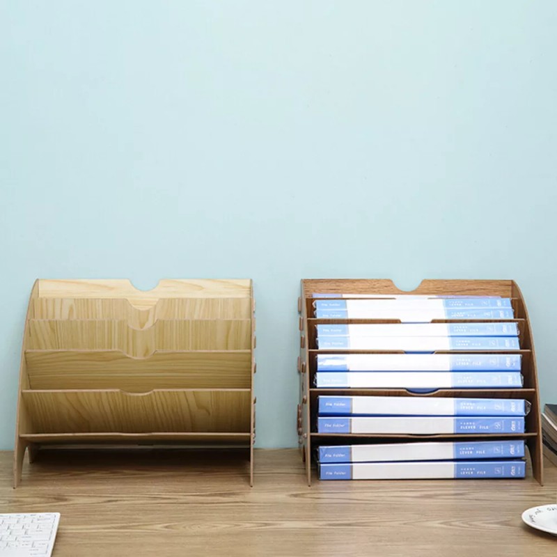 Unbranded Fan Shape Wood Binder File Storage Organizer Desktop Office Document Filing Rack