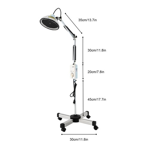 - Please make sure to wear light clothing when using it to prevent burns. The distance between the heating head and the skin surface should be 30-40cm/11.81-15.75inch. Do not position the lamp head too close to the skin.