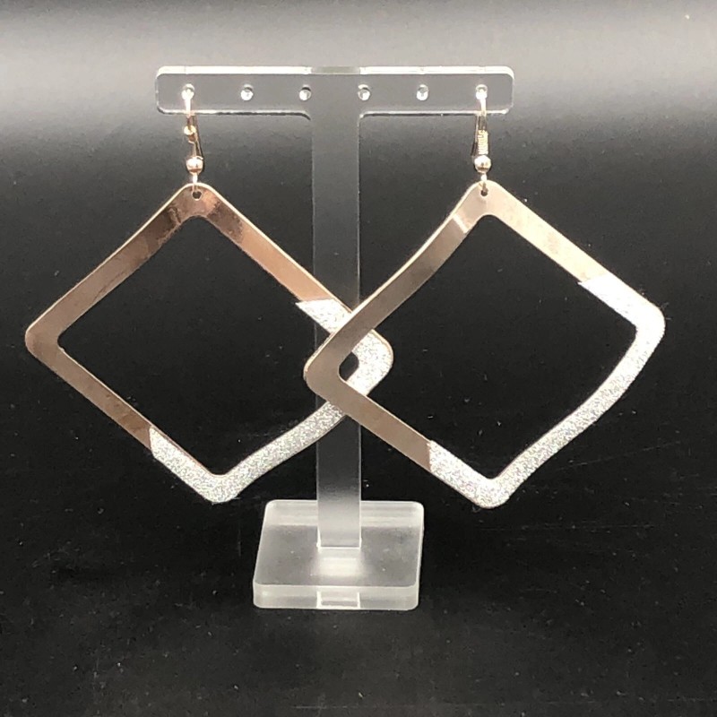 Unbranded Fashion Statement Copper Plated Sparkling Glitter Square Dangling Earrings