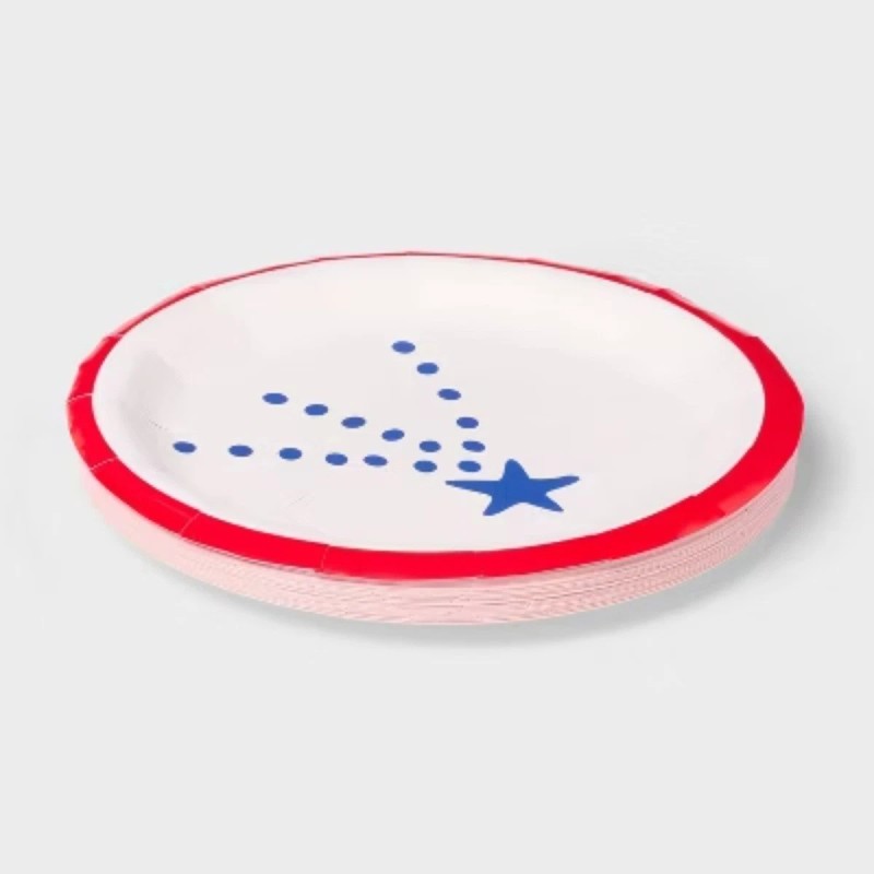 Add a pop of fun to your table with these Fireworks Dinner Disposable Plates 8.6"x8.6" - 20ct - Sun Squad™. Each plate is perfect for serving up burgers, BBQ or party snacks. With a bold fireworks print and a sturdy design, they’re great for celebrations big or small. You get 20 in a pack, making cleanup quick and easy after the fun's done.