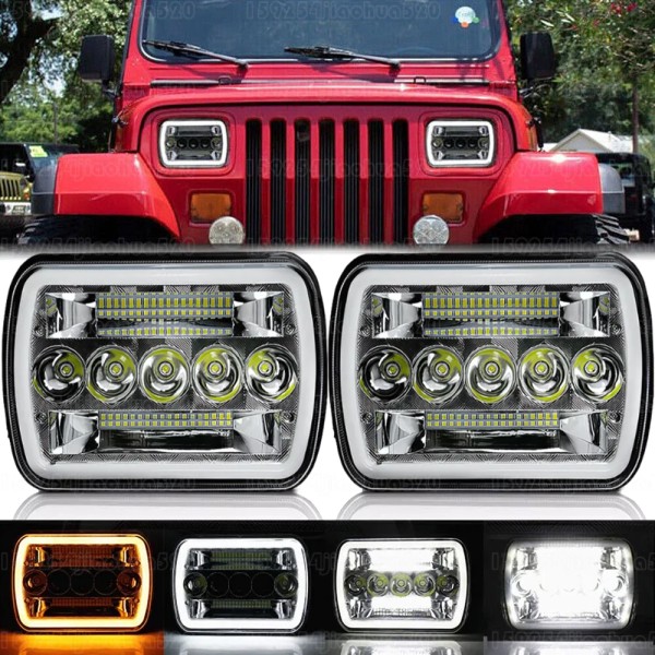 Unbranded Fit Jeep Wrangler YJ 1987-1995 Pair 5x7 7x6" LED Headlight Hi-Lo DRL Turn Signal