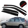 Improved Ventilation and Air Flow, UV protection,Outside Mounted-Stick on Application, reinforced acrylic is scratch-resistant, Non In-Channel Tape-On Outside Guard Visor, For 02-06 Honda CR-V, 02 03 04 05 06 2002 2003 2004 2005 2006, w/ Red SPORT Emblems Sticker