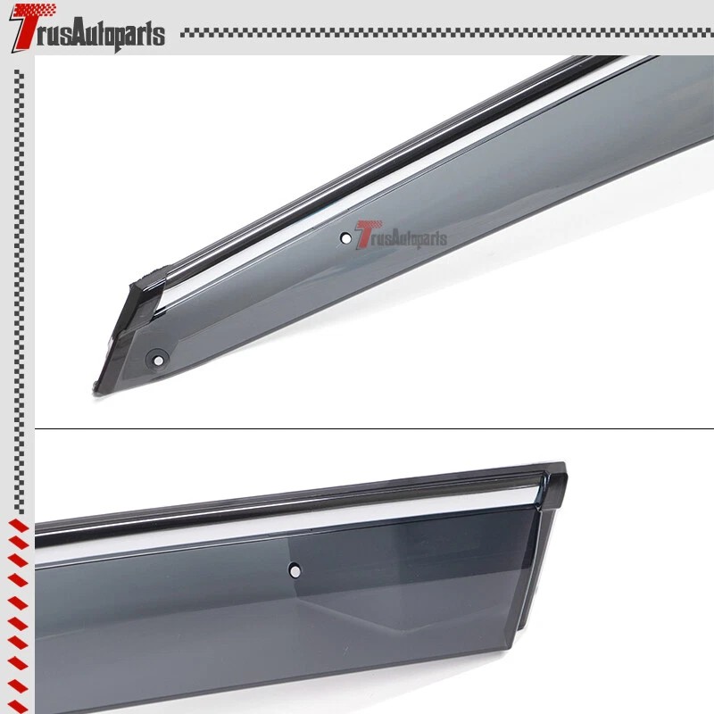 - Interchange Part Number: All Weather All Season Guard Vent Rain Wind Sun Snow Deflector, Non In-Channel Tape-On Outside External Window Visor Application, Car Safeguard, Out Channel Rain Shield, Windshields Sunshade,, Smoke Tinted Trim Side Window Deflector Ventvisor Bodykit, Made of Top Quality Polycarbonate, 13 14 15 16 17 2013 2014 2015 2016 2017, w/ Neo-Chrome Laser Emblems