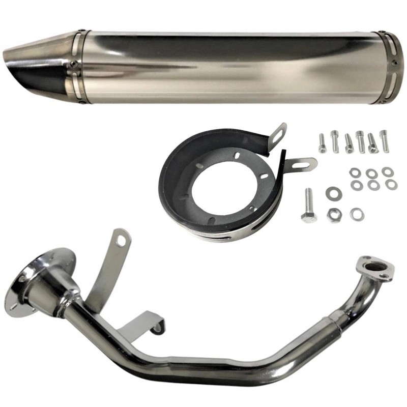 Shipped from our SC warehouse, this Top Quality Scooter High Performance Exhaust Kit Chrome Fits Jonway Gator scooters with 4 Stroke 125-150-170cc engines. Please confirm fitment before ordering.