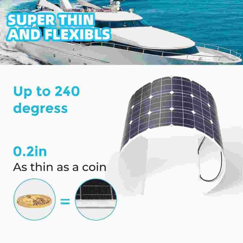As you would expect with flexible solar panels, the 100w flexible solar panel is bendable to a maximum of 45 degrees, thus encouraging mounting on curved surfaces. In fact, the body is such sturdy and flexible that it can be used on tight spaces or crowded areas that are usually out of bounds for conventional glass and aluminum panels.