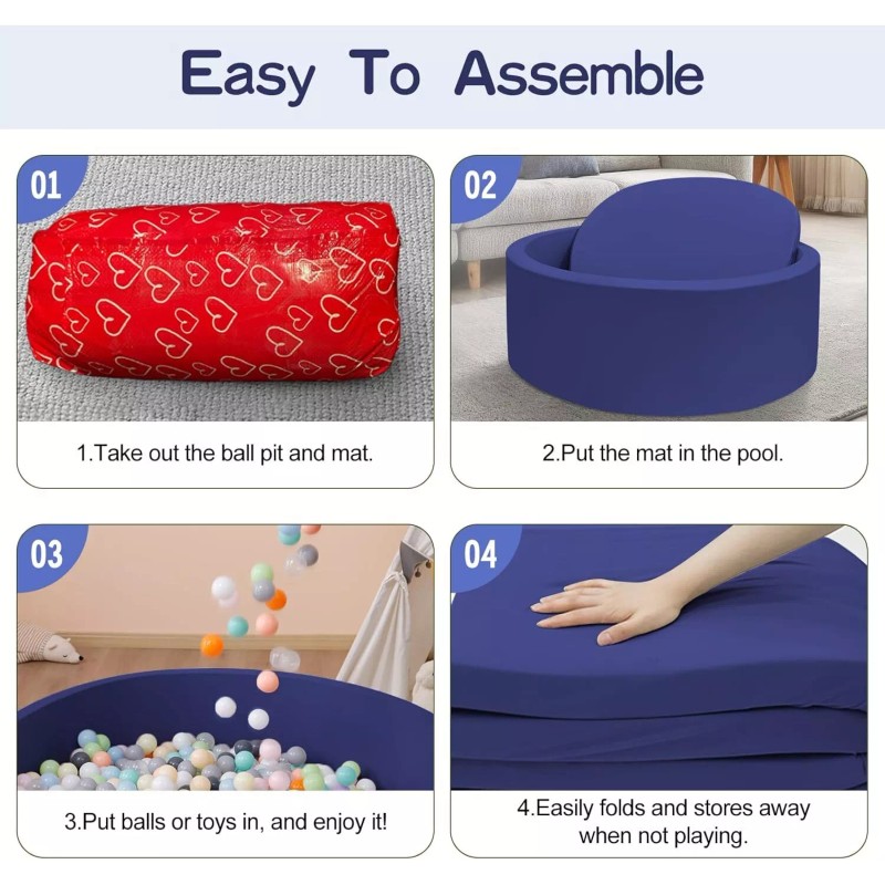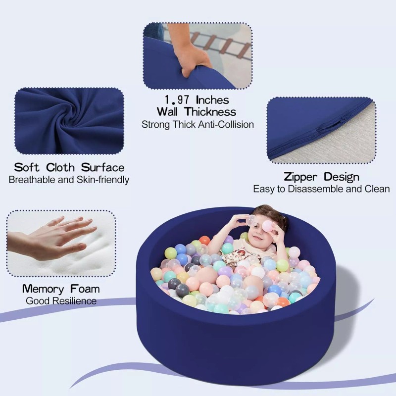 - [Safe and Comfortable] Baby ball pits inner material is made of 2 inches thick high-quality memory foam with good buffer function, which is non-toxic. The surface is made of high-quality skin-friendly fabric. Providing a safe and comfortable place for children to play. It is also a perfect nursery, freeing the mother's hands and allowing the mother to have more personal time.